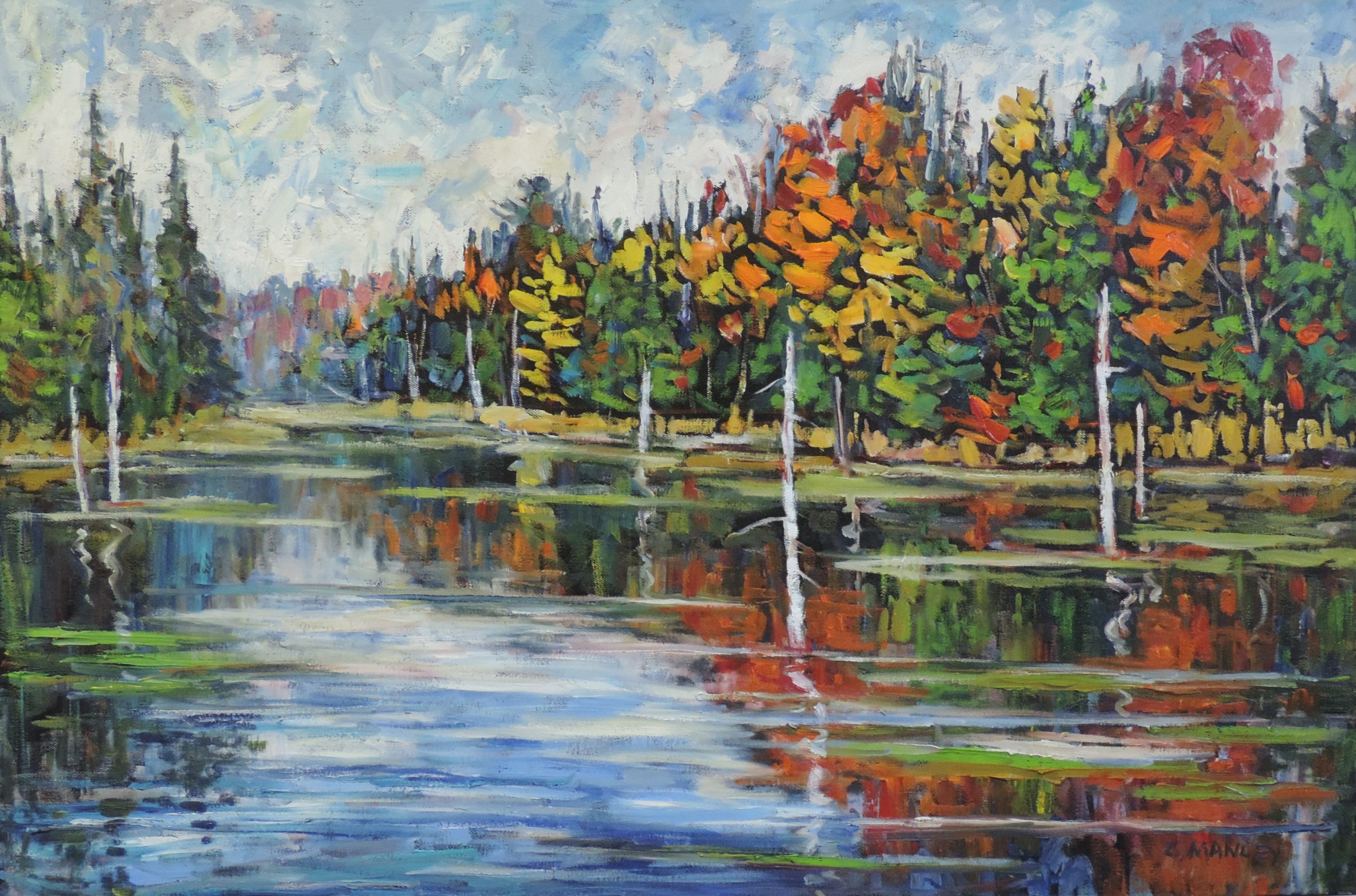 Fall Along Galeairy Lake | 10x30in | Oil on Canvas