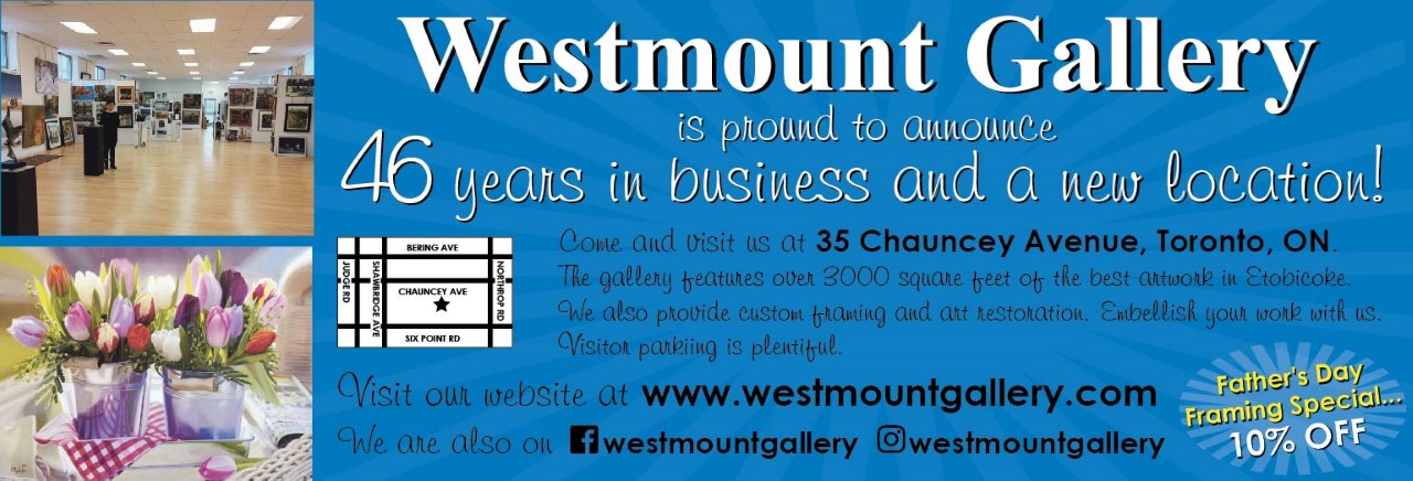 For the month of June and to celebrate Father’s Day, the Westmount Gallery will offer 10% discount on all custom framing.